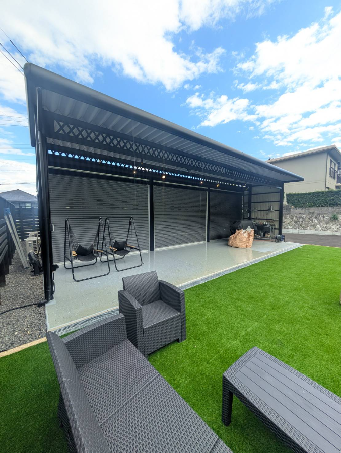 昨年、当社にて施工させていただいたイナバガレーディア3連棟(GRN-3662JL-3)の”秘密基地”で使う特注BBQコンロを製作いたしました。<サイズ:1200×500>