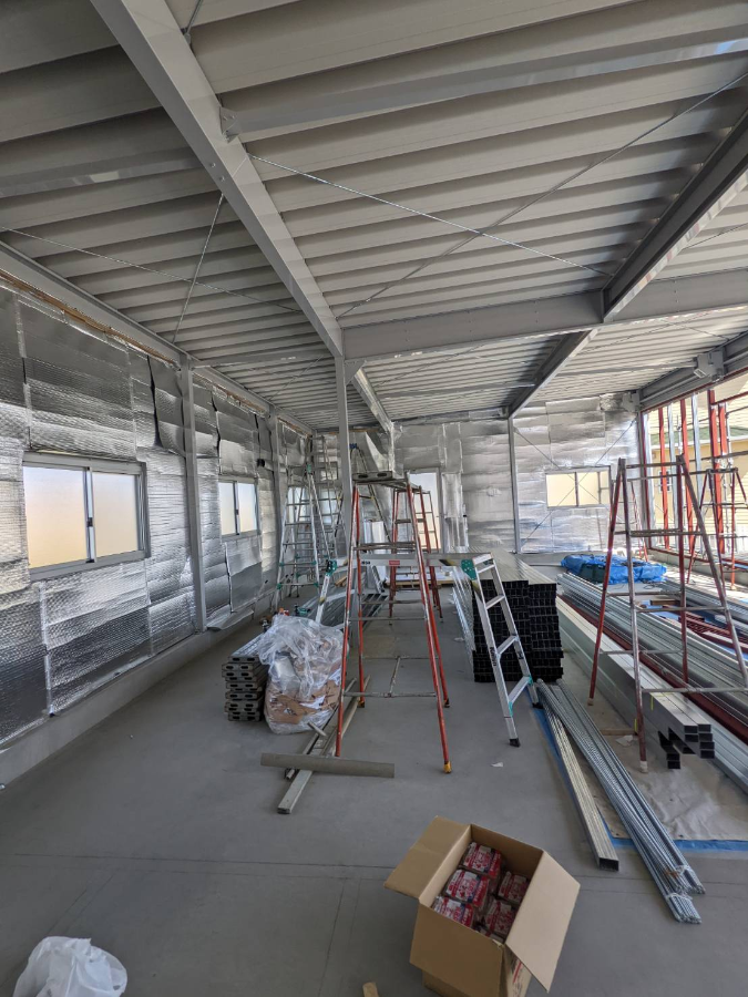 イナバ倉庫を利用し事務所を建築いたしました。 最近は材料高騰いたし高額になるのですがこの当社仕様で事務所を建築すると低予算で出来快適に過ごせます。 検討してる方は、いつでも見学出来るのでお気軽にお問合せください。