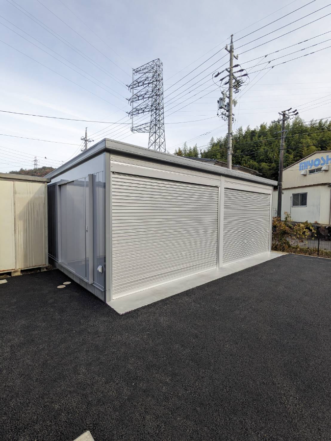 車庫として倉庫として連棟可能なスタンダードガレージ。豊富なサイズバリエーションと便利なオプションを使って多彩なカスタマイズが可能ですので敷地や用途にぴったりのガレージをつくることができます。(こちらのガレージにはオプションの壁面扉がついています)