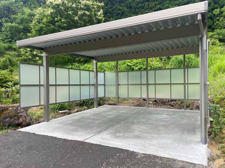 カーポートST 4500タイプ 耐積雪150センチ 4本柱 55-55型 ロング柱サイドスクリーンポリカ仕様 3面囲い 標準2段