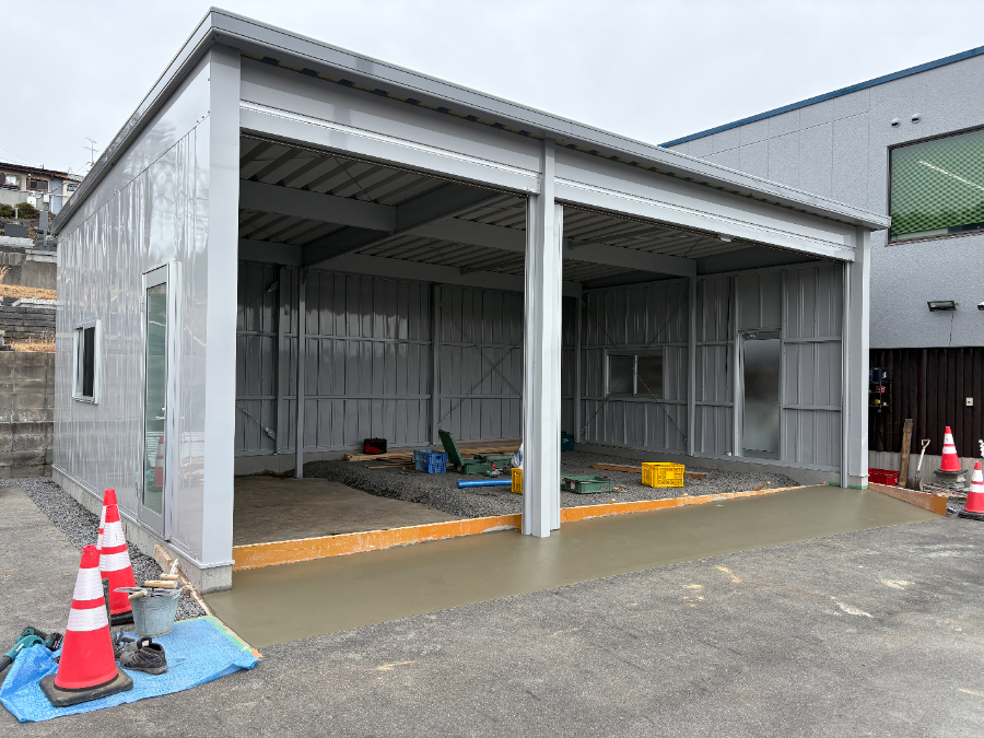 今回は会社様の倉庫新築工事及びテラス工事をいたしました。