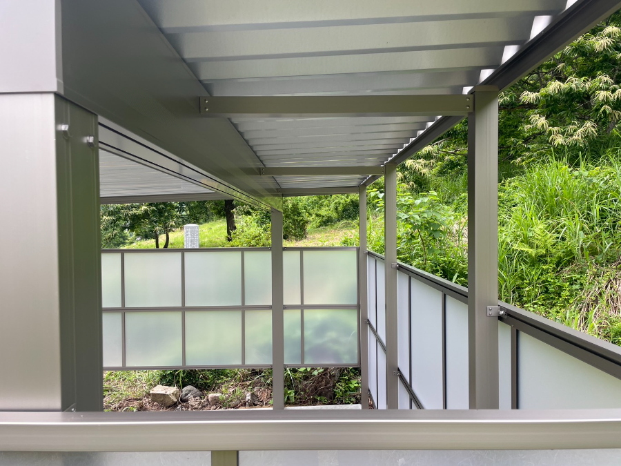 カーポートST 4500タイプ 耐積雪150センチ 4本柱 55-55型 ロング柱サイドスクリーンポリカ仕様 3面囲い 標準2段