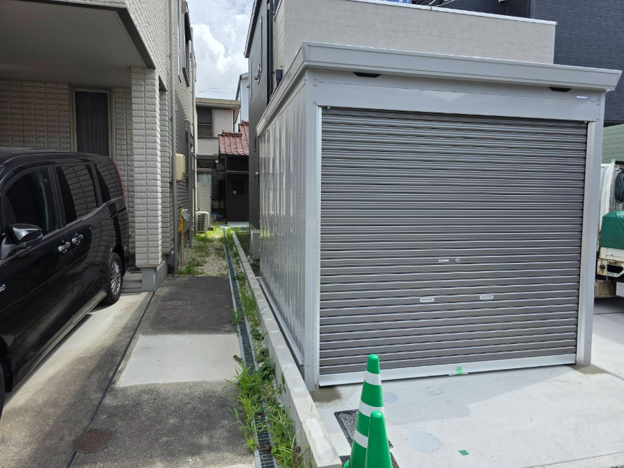 今回は名古屋市熱田区でイナバ バイク保管庫 FM-2635HD(シャッターカラー:GMガンメタリック)の施工をいたしました。