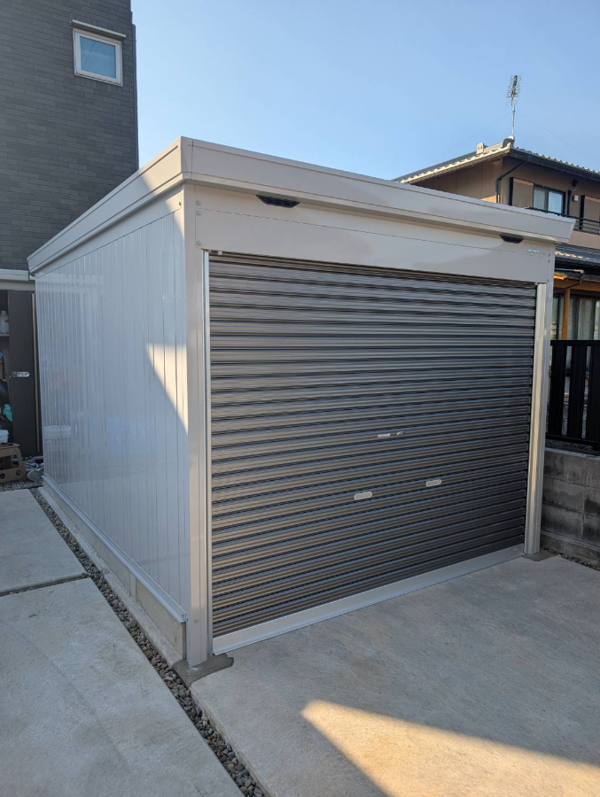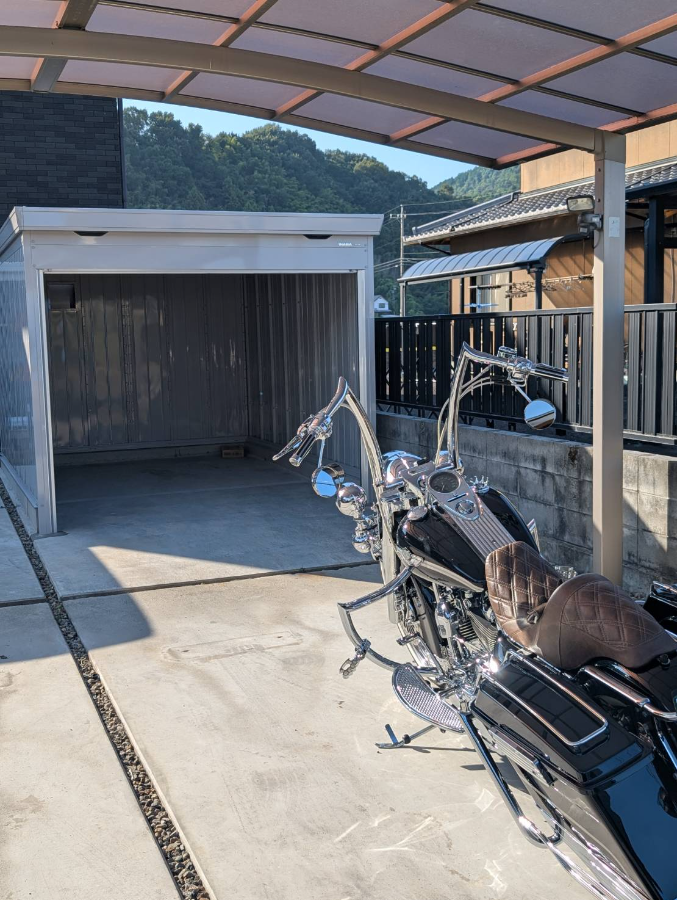 今回はイナバ バイク保管庫 FM-2635SD (カラー:GMガンメタリック)の施工をいたしました。